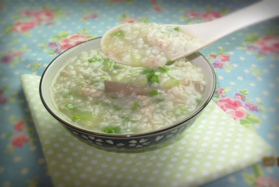 原料:鲜猪肝50克、鲜瘦猪肉50克、大米50克、油15毫升、盐少许。