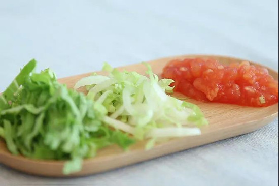 3、焯水之后切成碎末,菌菇对于宝宝来说相对不易消化,要切的细碎一点。