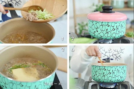 3、奶酪也可以用配方奶、鲜奶、牛奶代替。在汤快煮好时再加入,煮至汤底泛白后就可以了。