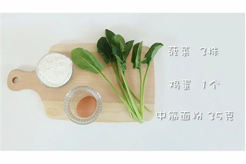 鸡蛋1个、菠菜3株、中筋面粉35g