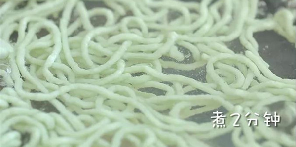 5、往热水中以画圈圈的方式挤入面线。全部挤好后再煮2分钟,确保熟透。