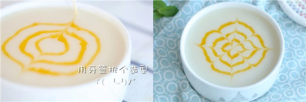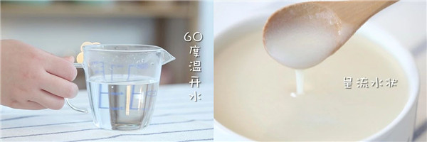 2、准备一个裱花袋,倒入南瓜泥,放置一旁待用。. 泡米粉要用60~70℃左右的温开水哦。