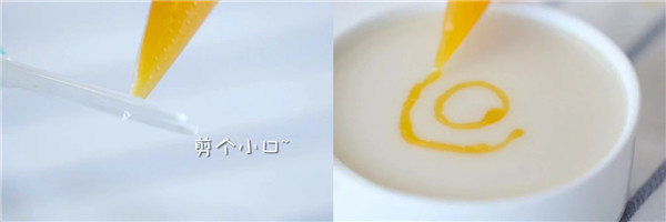 4、裱花袋剪一个小口子,记住不要剪的太大哦。我们先画3个小圈圈哦