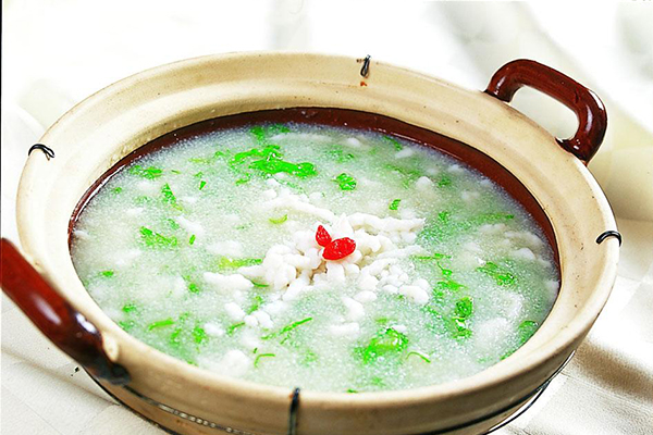 做法:先将青菜和鱼肉分别剁成泥状,放在一旁备用,然后再将米粉调配成适量的糊状,将所有的材料都放入锅中,等到所有的食材熟了即可!