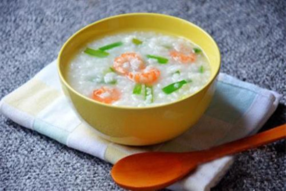 虾仁豆腐豌豆泥粥:熟虾仁剁碎备用;嫩豆腐用清水清洗剁碎,鲜豌豆加水煮熟压成泥备用。将厚粥、熟虾仁、嫩豆腐丁、鲜豌豆泥、及高汤放入锅内,小火烧开煮烂后,加入熬熟的植物油和少量盐即成。