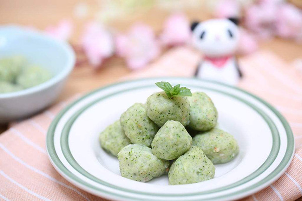 加入一点盐和宝宝植物油,将豆腐蔬菜泥,团成大小适中的小丸子,放在盘子中,上锅蒸熟即可
