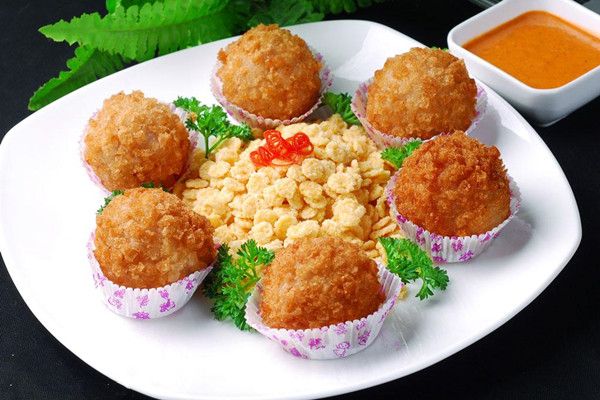做法:将鲜虾洗净后去头和虾线剁成泥状,然后将土豆切成薄片状,胡萝卜切成条状后一同放入锅中焯水捞出,然后在搅拌机中制成糊状;将鸡蛋敲碎后加入虾泥和适量的面粉,再将土豆和胡萝卜糊一同放入搅拌,可是适量的加入玉米淀粉搅拌均匀;最后制成虾球在锅中煮熟即可。