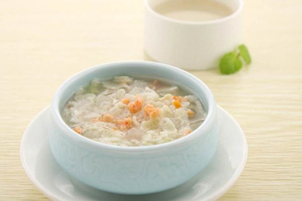 做法:将冬瓜和鲜虾一同洗净,冬瓜去皮切成小块,鲜虾去除虾线和虾壳;将冬瓜先在锅中焯水捞出,鲜虾切成虾泥,生姜切末,再将所有食材与冬瓜一同放入煮熟,煮熟后在搅碎机中制成泥状即可。