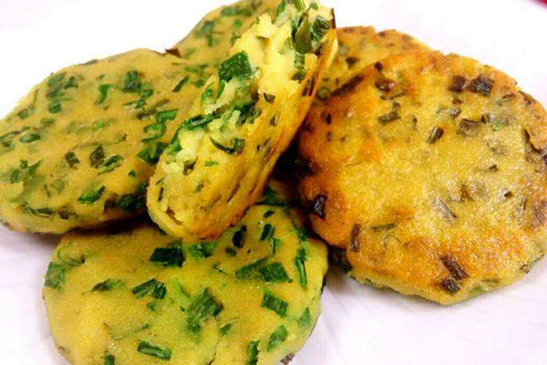 锅中加少许橄榄油,取少量饼糊团成团再压成小饼状,放入锅中小火慢煎,直至饼熟透即可