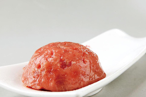 做法:将猪肉洗干净切小块、生姜切碎末,和猪肉混合上锅蒸熟,再放入搅拌机搅拌均匀