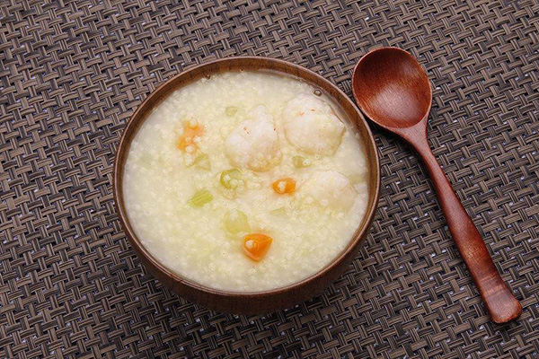 小米煮粥,在水微微滚开冒泡的时候下入蔬菜糊,搅拌均匀,继续煮粥,直到粥熟即可