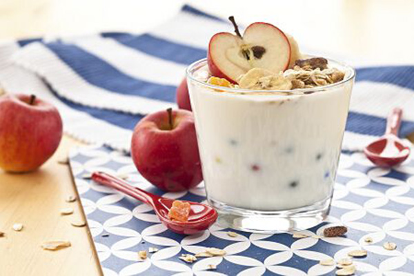 燕麦放入牛奶中,放入锅中加热,一边加热一边搅拌,直到牛奶起泡沫,加入苹果泥