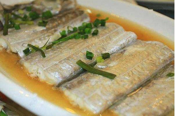 做法:将带鱼洗净后去除鱼皮,然后放入碗中加入适量的食盐以及葱姜进行腌制;同时将适量的生抽和鲜贝露进行调汁,调好后均匀的倒入腌制好的带鱼中;最后放在蒸锅上蒸10分钟起锅,再浇上热油即可。