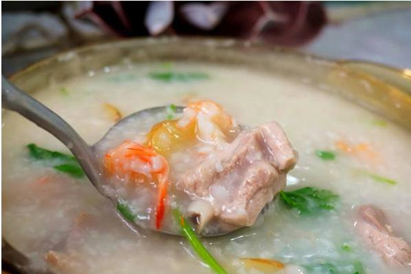 做法:大米洗净后在清水中浸泡备用,新鲜的排骨剁成大小均匀的块状倒入锅中焯水;准备好的干贝放入温水中浸泡,将大米和清水倒入煮锅中,用大火煮开后放入排骨和干贝,用小火煮制粘稠后加入芹菜末即可起锅。