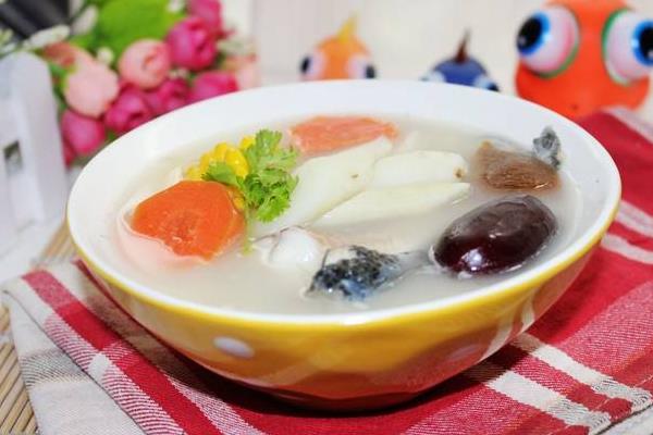 做法:将黑鱼洗净后切成大小均匀的块状备用,山药去皮后同样切成小块;锅中烧热油先放入适量的姜片炒香,再倒入黑鱼同炒后加入适量的清水熬汤,用大火将汤煮开后倒入山药转为小火,最后在起锅前加入适量的食盐即可。