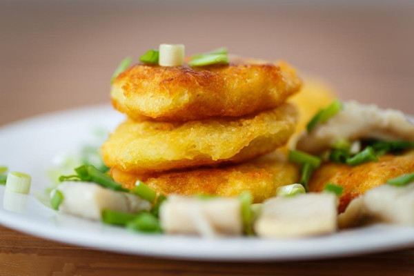 做法:将所有的食材准备齐全,土豆去皮洗净在锅中隔水蒸熟,鳕鱼洗净后用姜片腌制去腥;然后将蒸熟的土豆制成泥状,鳕鱼切成碎末;再将鳕鱼倒入土豆泥中,继续加入面粉、鸡蛋充分的搅拌;锅中刷上一层薄薄的油,最后将土豆饼煎熟即可。