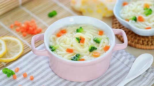 2、烧一分钟后放入面条和盐,再烧三分钟(1岁以下的宝宝可以不放盐)