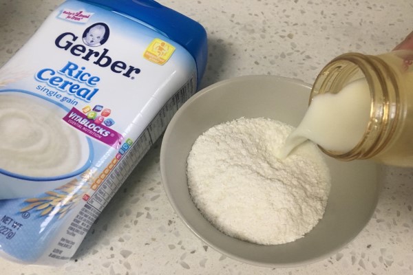 5.一般来说刚开始添加婴儿米粉的宝宝,冲调好的米粉性质最好是糊状的,爸爸妈妈们可以在冲调的时候看看米糊是不是会慢慢流下来,状态有点像我们喝的炼乳一样。