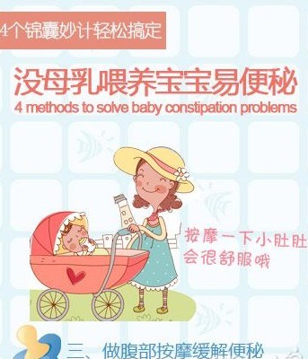 通常人工喂养的宝宝容易便秘,大便长时间存留在体内还会使毒素淤积体内,影响正常的新陈代谢,并从而导致宝宝营养不良,抵抗力下降。为了缓解宝宝便秘的情况,妈妈可以选择为宝宝做腹部按摩。