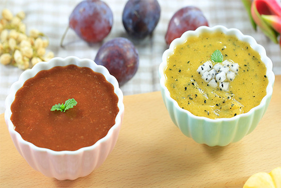 2、西梅泥:新鲜的西梅10颗,用水清洗干净后去核取果肉,然后将西梅肉放入料理机中打碎成泥,建议食用时混入米糊中,或者用水稀释一下,因为西梅泥酸甜味道较重,七个月的宝宝可能还不太适应哦。