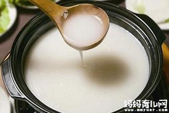 熬制米汤时要用好的大米,加适量糖或盐,可加绿豆,有清热、解毒的作用,也可以单独煮绿豆汤给孩子喝;