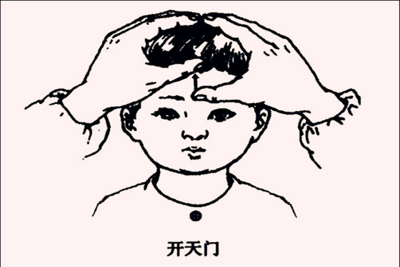 第四步:开天门,天门穴又名攒竹,位于两眉中(印堂)至前额发际处,成一条直线。施术者两拇指交替自下向上推,50-150下/次,每天2-3次。另外如果感冒程度严重,每次也可以多推100-200下。