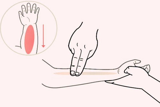 这个穴位很容易找,将孩子的手臂伸直,居于孩子前臂内侧正中线的位置为天河水穴位,妈妈可以两指并拢(食指和中指),从孩子的手腕处推拿到手肘处,划一条长长的直线即可,建议一次推拿10分钟,中途觉得推拿不顺畅时可以沾一些水再推。推拿天河水之后妈妈需要观察孩子的体温变化,如果体温没有明显升高或降低时,可以再继续推拿20分钟。
