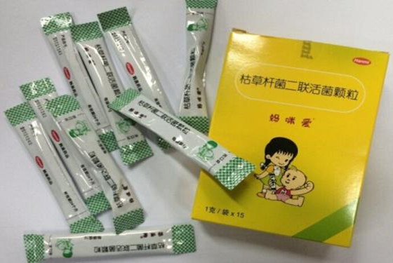 枯草杆菌肠球菌二联活菌多维颗粒剂(妈咪爱):适用于消化不良,食欲不振,营养不良,肠道菌群紊乱引起的腹泻,便秘,腹胀,肠道内异常发酵,肠炎,使用抗生素引起的肠粘膜损伤等症。