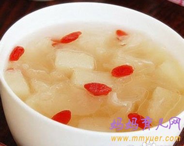 原料:鲜梨3个,粳米100克。制作:将梨洗净,连皮切碎,去核,加水适量,用文火煎煮30分钟,捞出梨块,加入淘洗干净的粳米,按常规煮成粥食用。梨也可不去核,但要去籽,因为梨核营养和治疗功效也很强。
