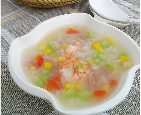 2.粳米煮粥,将熟时加入丝瓜、虾米及其他配料。
