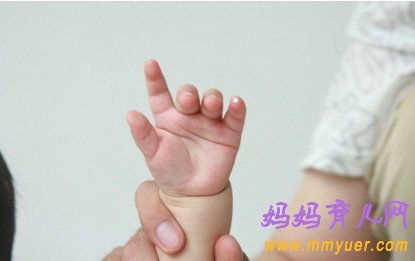 [操作]小儿四指拼拢,从食指横纹推向小指横纹,为推四横纹。用拇指甲掐,为掐四横纹。