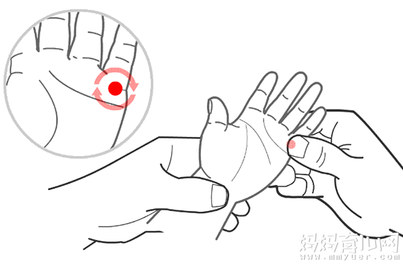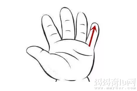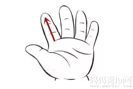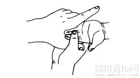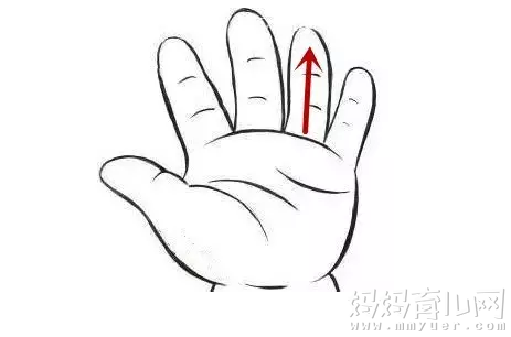 使孩子掌心向上,一手握住孩子的中指,使孩子无名指、食指暴露于前,宝妈用另一手的拇指或中指由孩子无名指和食指指根向指尖同时直推200-300次。(温馨提示:速度要轻快,一气呵成)
