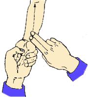 用一只手握住孩子的手腕,使其掌心向上,然后用中指、食指指腹自孩子腕横纹直推向肘横纹,推的方向一定是从腕到肘,不可反向操作!