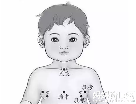 3、若小孩咳嗽伴有咽痛嗓哑,可加揉天突穴。