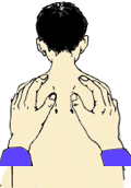 (手法:从肩井穴开始,沿着肩胛骨内侧缘,从上往下往、往两侧做分推,手指要稍微用些力,这样推能够刺激肩井穴、风门穴、肺俞穴等治疗咳嗽的大穴。时间次数的操作上每次不少于200-300次,尤其针对比较严重的问题,如气管炎、肺炎等则需要按摩的时间会更多10分钟。)