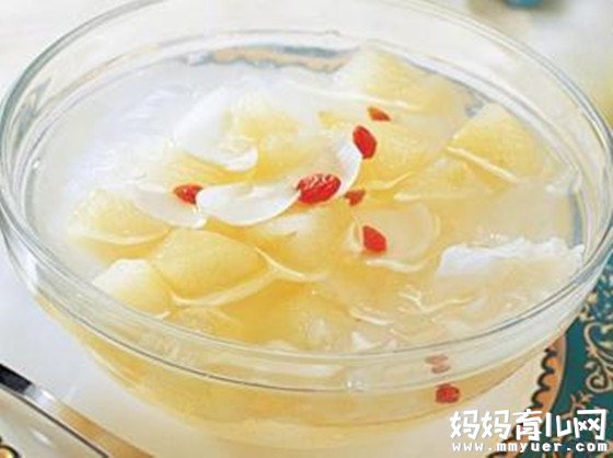 做法:白梨挖去核心,将其他三味同放梨内,盖好扎紧放碗中,隔水炖熟;服食,