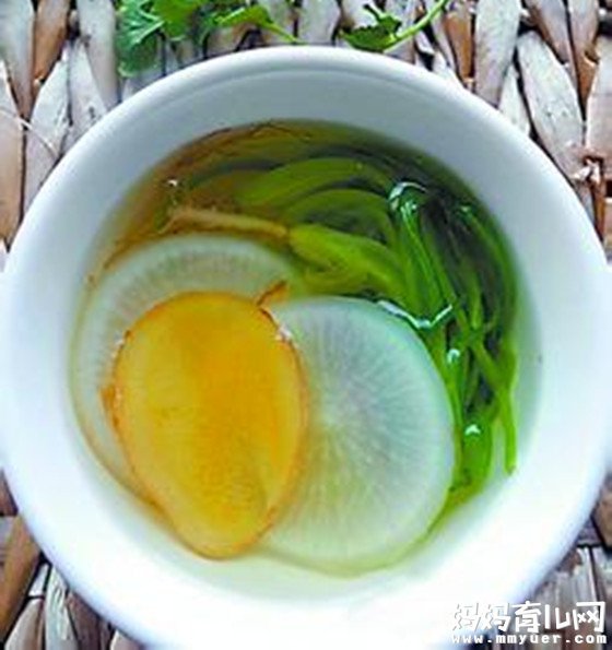 做法:用水三碗先将萝卜煮熟,再放葱白、姜、煮剩一碗汤,连渣一次服。