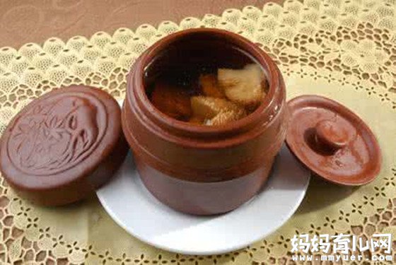 制法:先将4个鸭梨去皮切片榨成汁,把冬菇200克洗净切片,加适量水和冰糖同炖,等冬菇炖熟后,早晚分两次连汤同食,即可。