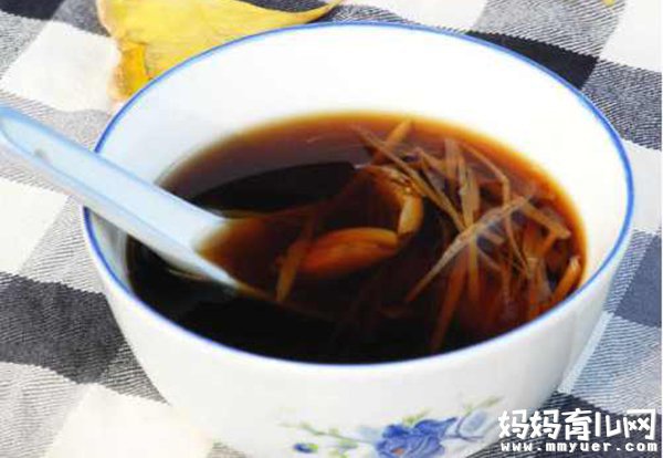 5、把煮好的红糖生姜水盛出,等温热的时候趁热饮用(一定要热饮);