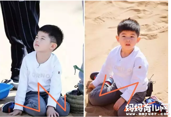 ④避免w型姿势(膝盖向外翻跪坐,屁股坐在双脚上),因为这种姿势会让宝宝的骨盆向外,大腿骨向内扭转,膝关节随之内翻,对腿型十分不利;