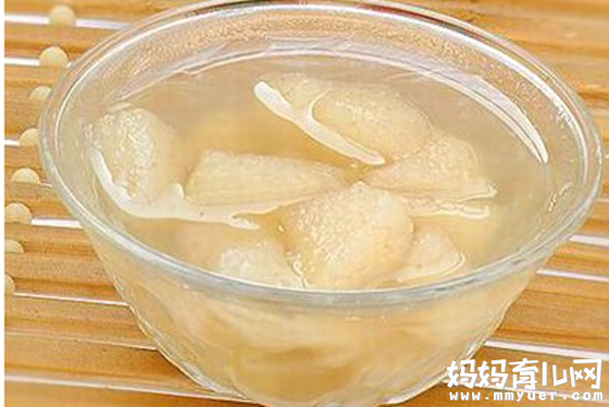 6、梨和冰糖能缓解孕妇感冒喉咙痛的症状,方法是把梨洗干净,然后切成片,加水和冰糖一起煮,盖上盖子煮一会就可以了,然后就可以吃梨喝水。