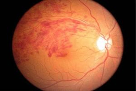 特点:发病于出血后的15-45天之间,无新鲜出血,眼底可见暗红色出血及渗出灶。