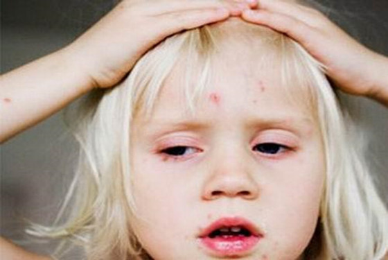 3、出疹期:进入第三个阶段出疹期时,孩子的面部,头皮部位,前胸,后背会出现小红点(红色丘疹),水疱(绿豆大小),这些水疱是透明清亮的,极易破裂,而且孩子同时会感觉到瘙痒以及疼痛。
