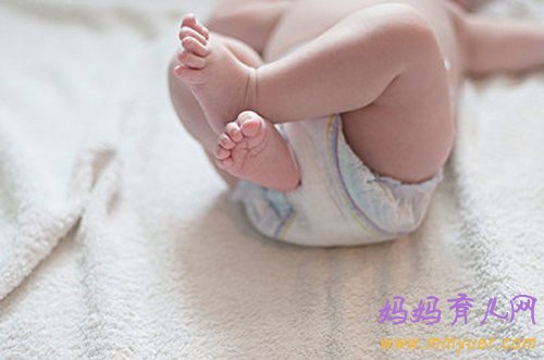 1、用一只手抬起宝宝的臀部,然后向臀部下方塞进尿布裤。