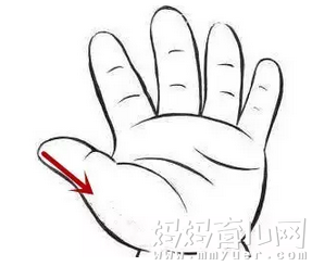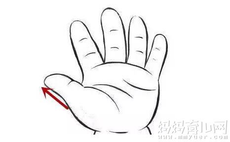 顺着拇指外侧缘从拇指指尖推至指根