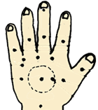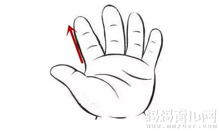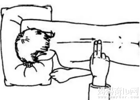 作用一只手托住孩子的手掌,暴露桡侧缘,然后用另一只手的拇指螺纹面从孩子手掌虎口推向食指指尖。