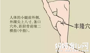 丰隆穴位于外脚踝上8寸,距胫骨前缘二横指(中指)