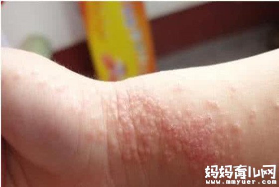 在湿疹早期或急性阶段,患处有成片的红斑,密集或疏散的小丘疹,或是肉眼难见的水疱,严重时有大片渗液及糜烂。