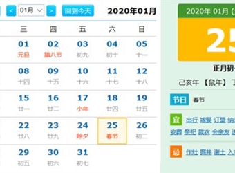 春节是每年的农历正月初一,又叫阴历年,也是民间俗称的过年,那么2020年春节公历时间是几号星期几呢,2020年春节放假多少天?更多关于2020年春节的相关内容尽…