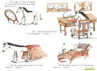 1.清晨,小斑马卡卡睡醒了,他走到镜子前,发现自己的黑条纹不见了!2.